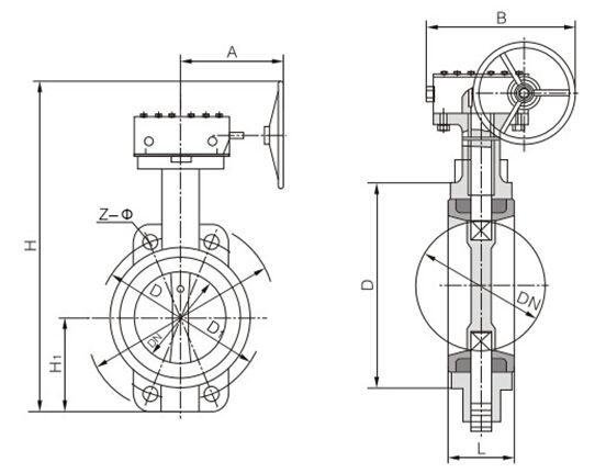D371X蝸輪對(duì)夾式蝶閥主要外形尺寸